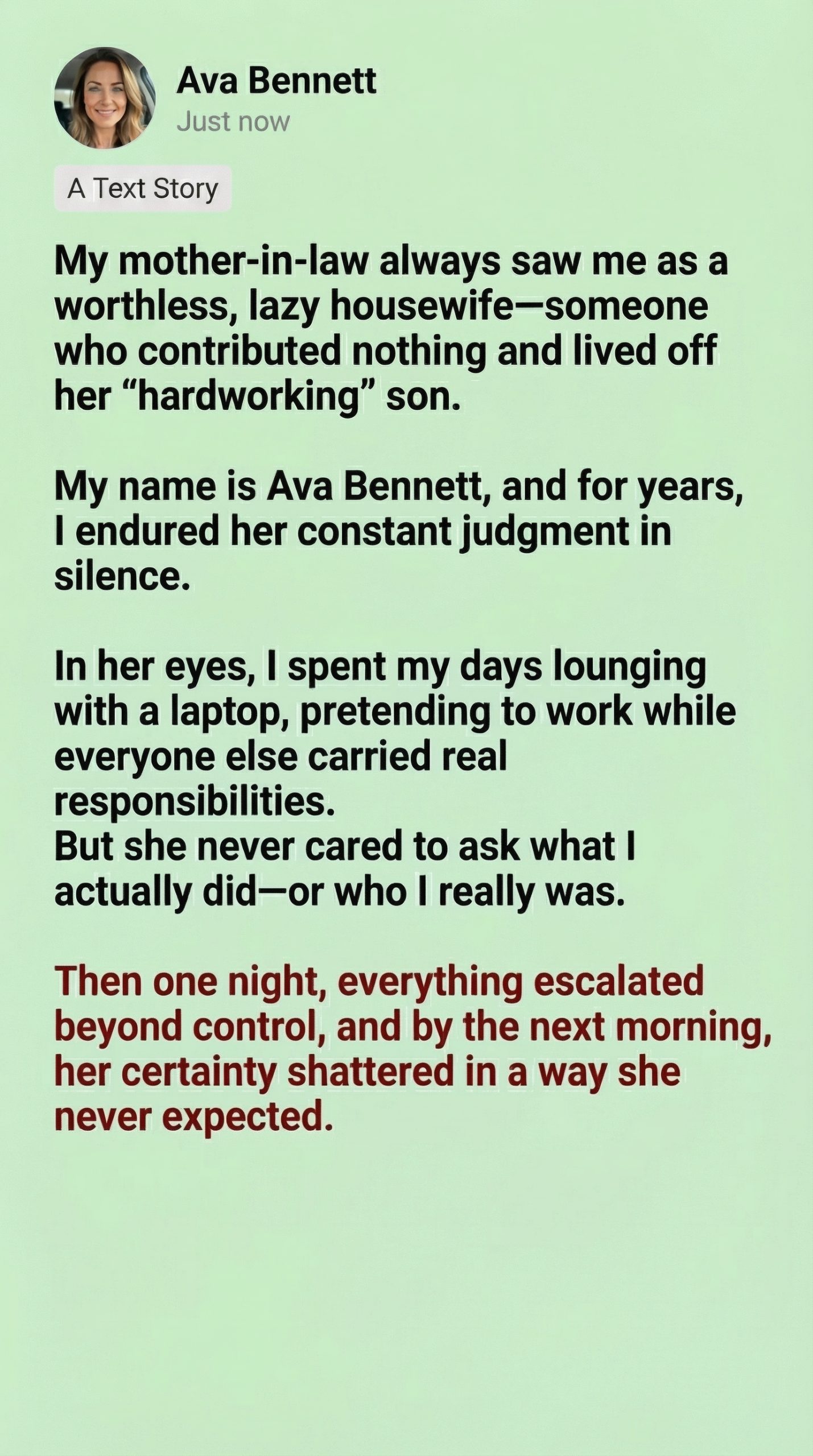 “You’ve been living in this house,” I continued, “judging me, insulting me, deciding what I’m worth…”