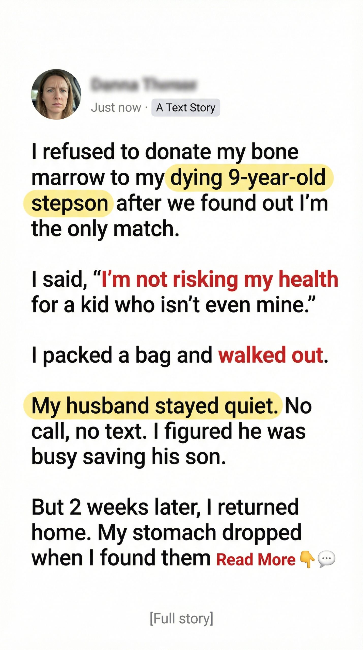 “I’m not risking my health for a kid who isn’t even mine.”
